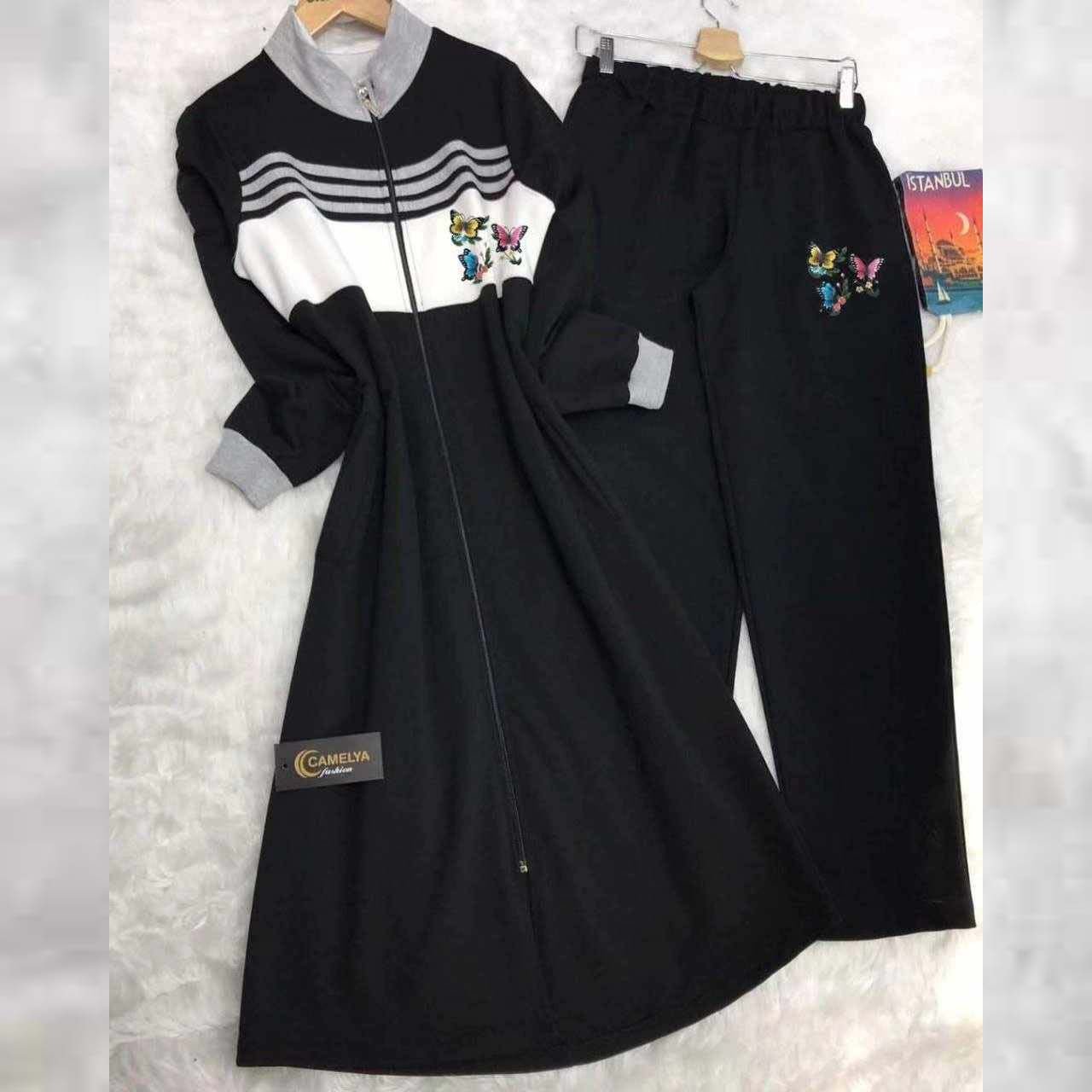 Butterfly Printed Stripe Style Patch-Work Long 2-Pcs Winter Tracksuit.