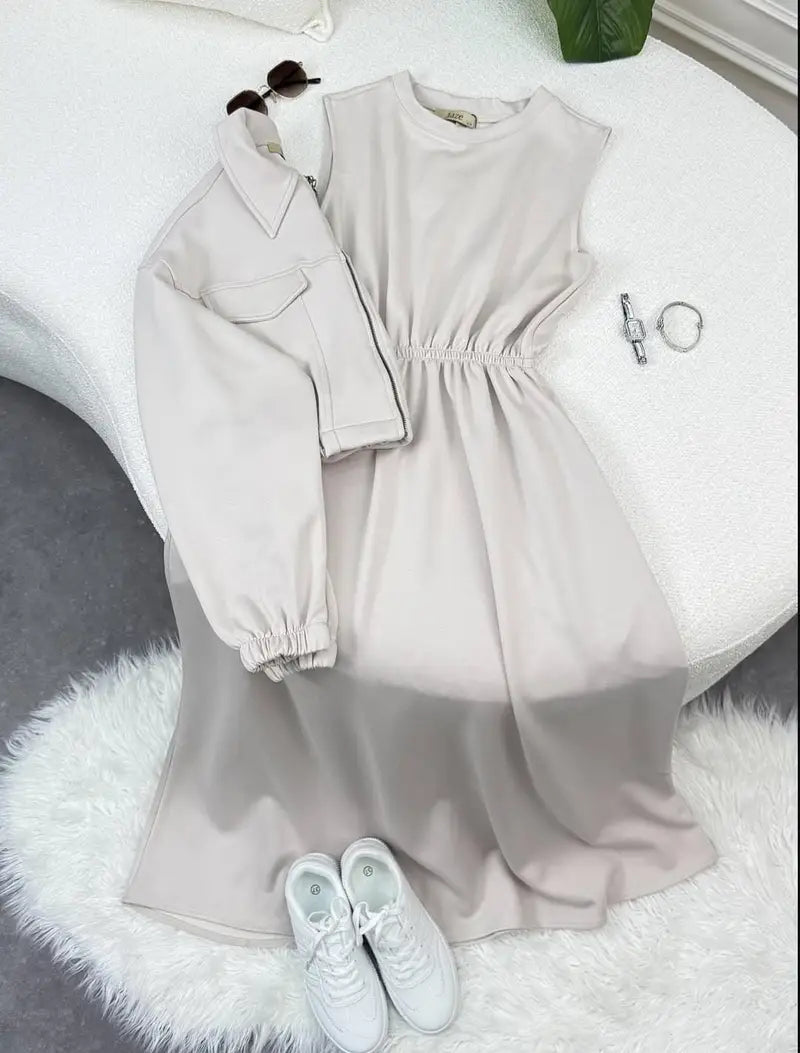 Drop Shoulder Short Jacket Maxi Style 2-Pcs Winter Co-Ord Set. WWTS-15