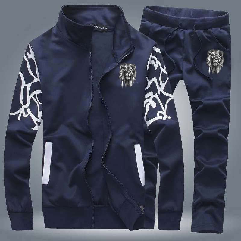 Lion Arm Printed Zipper Style 2-Pcs Winter Track-suit D-3.