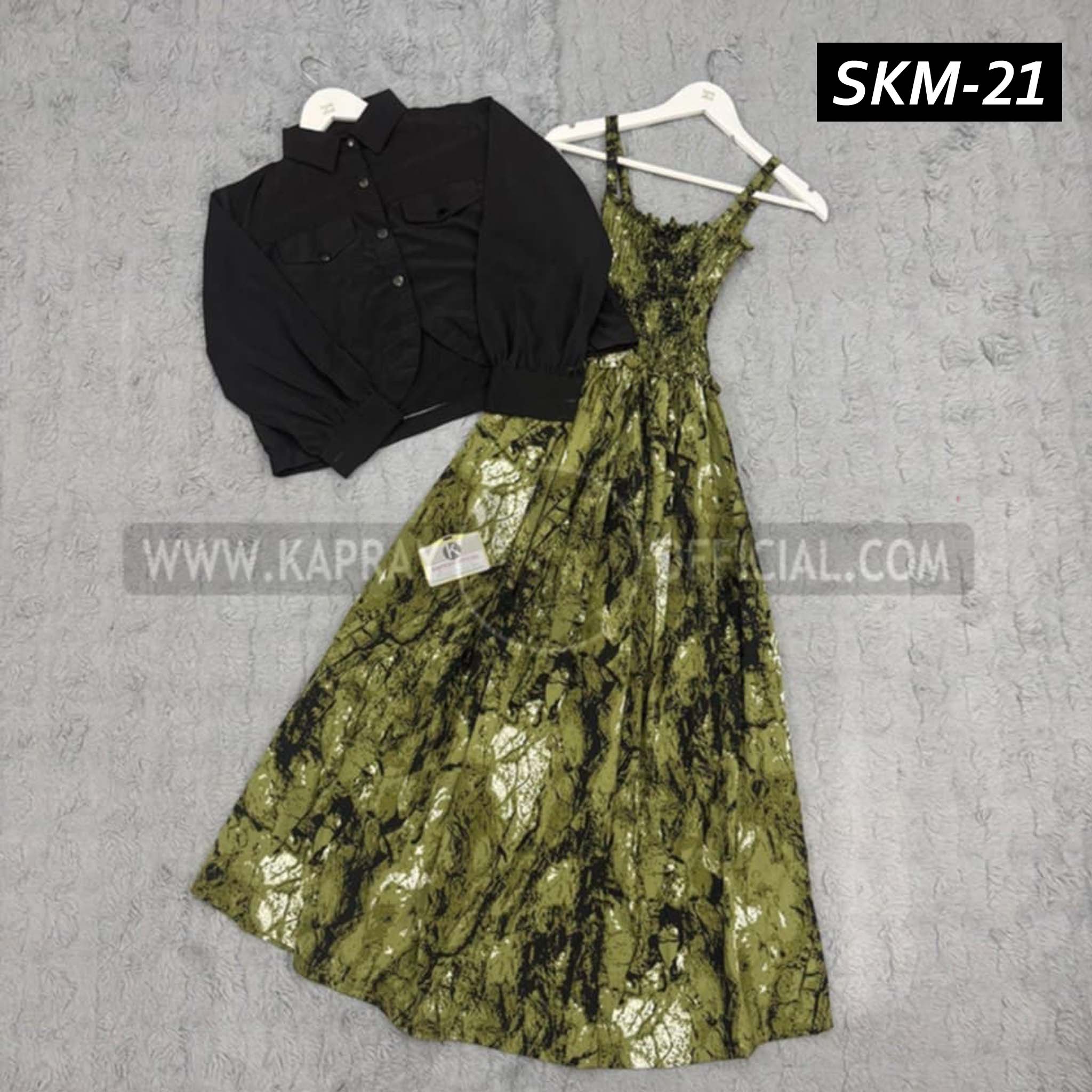 Short Koti & Printed Smoky Maxi Style Western 2-Pcs Stiched Suit. SKM-21